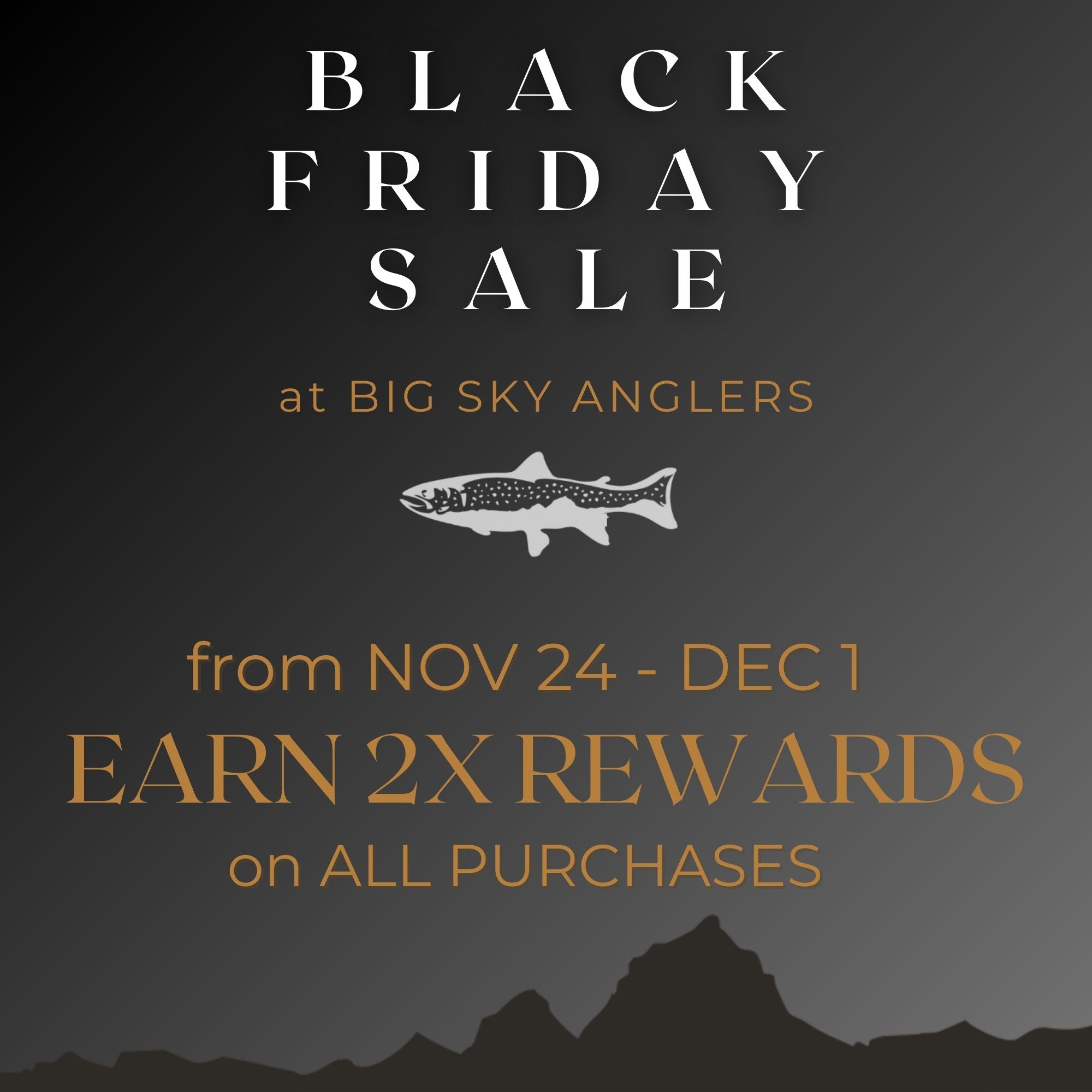 We have a great offer for you this year for Black Friday. Now through Dec 1, earn 2X REWARDS POINTS on all purchases in our online store. Double Up on Reward Points as you check off those special fly fishers on your Holiday Shopping List.