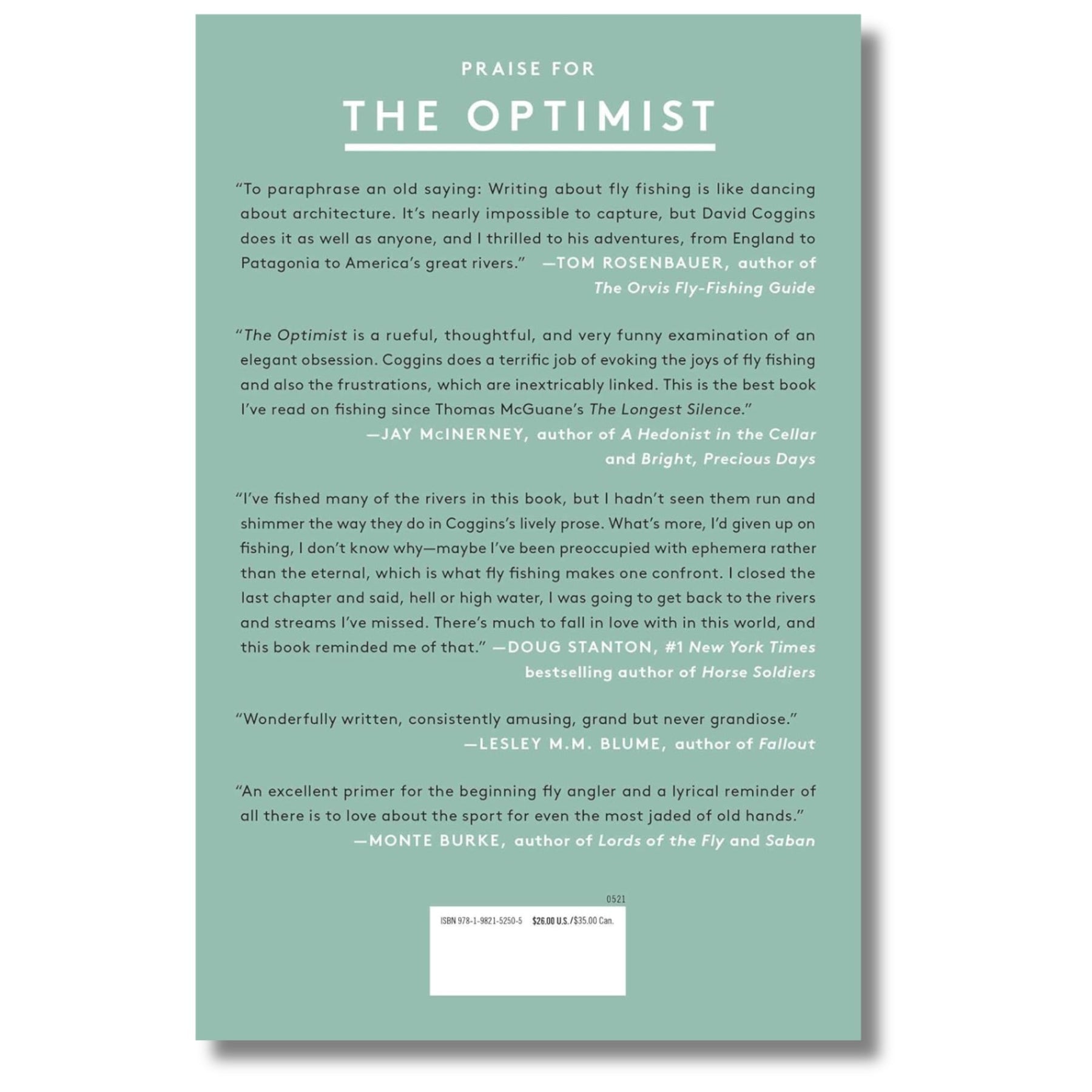 The Optimist, David Coggins makes a case for the skills and sensibility of an enduring sport and shares the secrets, frustrations, and triumphs of the great tradition of fly fishing, which has captivated anglers worldwide.