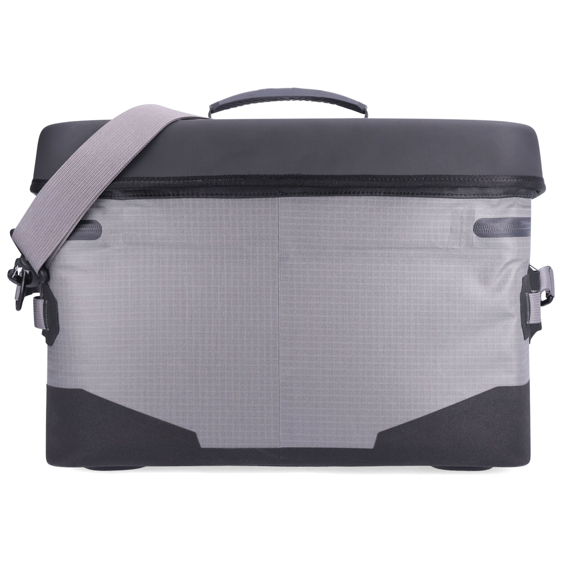 Overhanging compression molded lid keeps rain and spray out when zipper is open