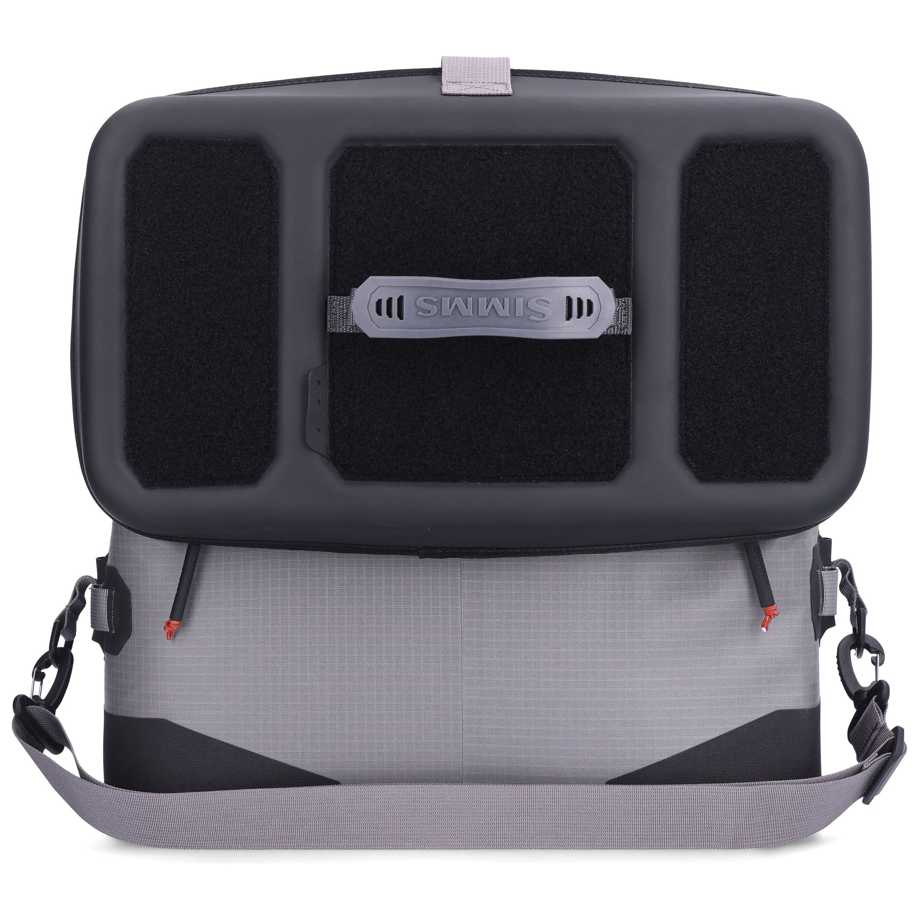 Simms custom molded grab handle and removable/adjustable shoulder strap are included